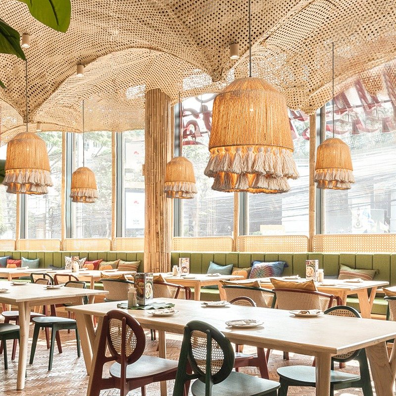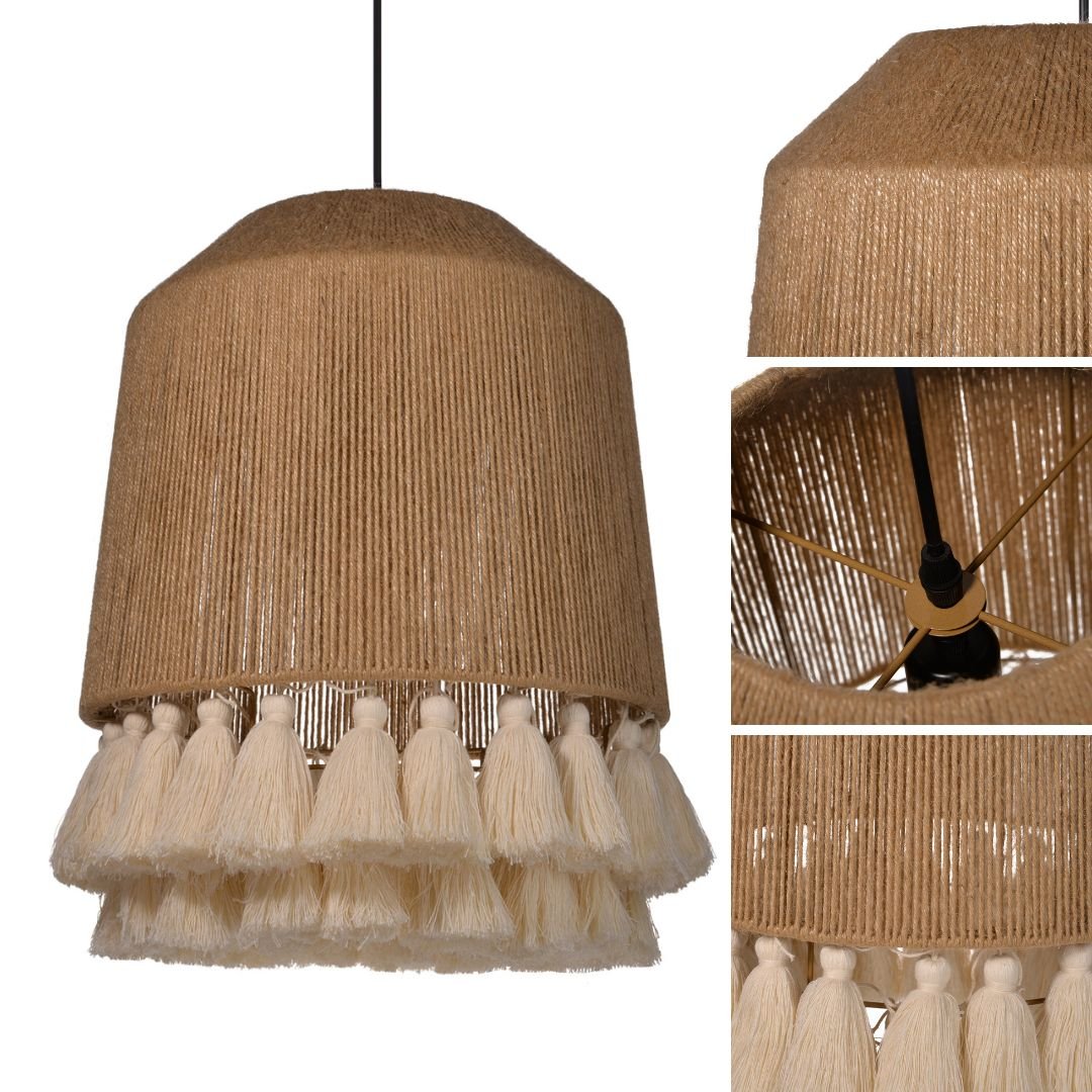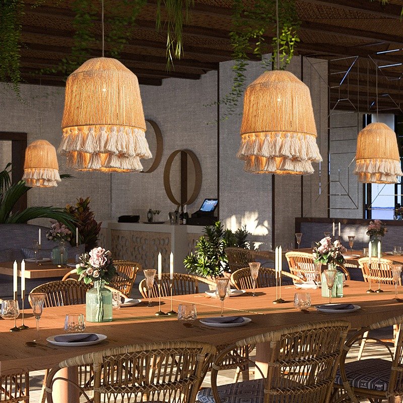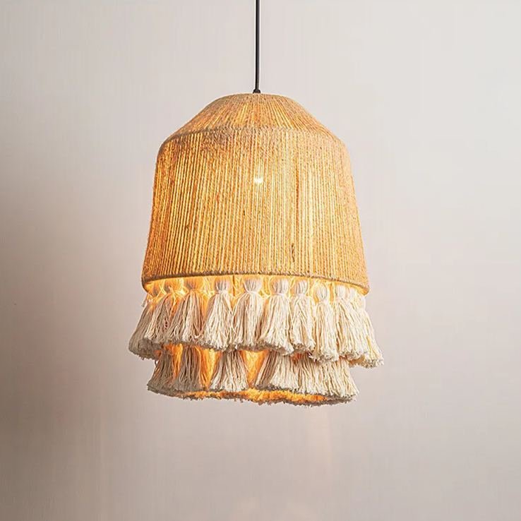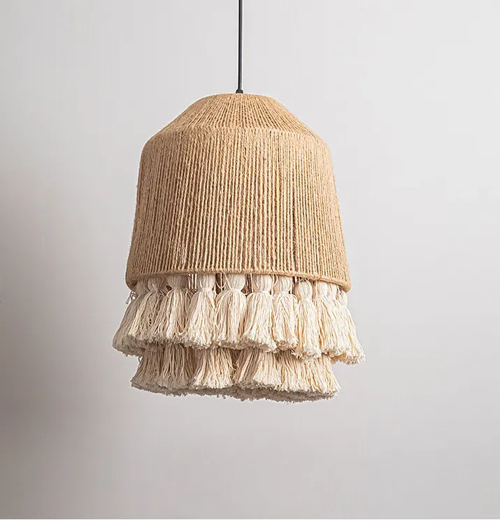 The fusion of bohemian and Nordic styles uses high-quality raw pure cotton thread for the hanging decor, providing a comfortable texture, while the lampshade, made of hemp rope, is hand-woven, highlighting a vintage and natural aesthetic. Available in Round and Bonbon shapes.