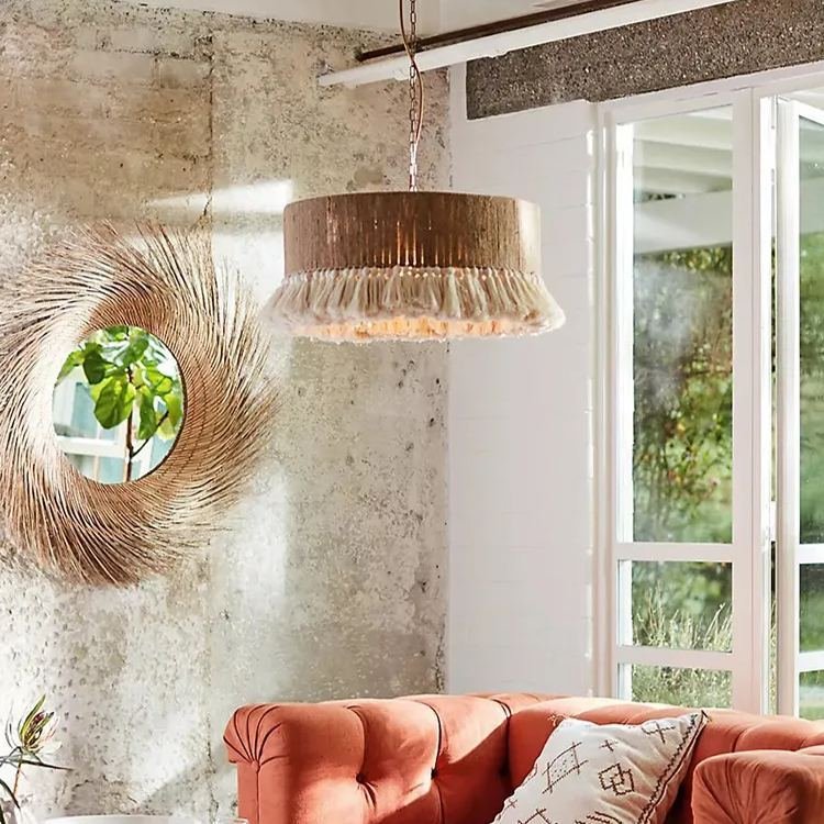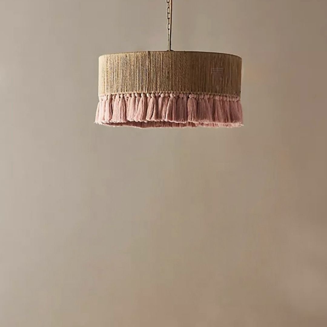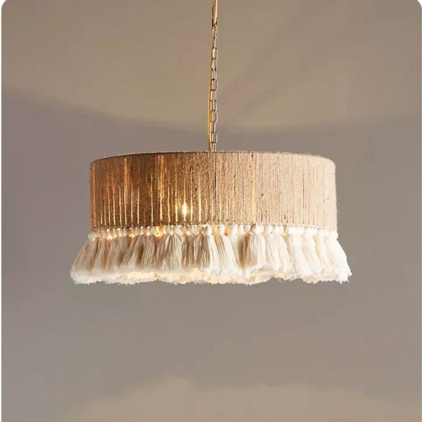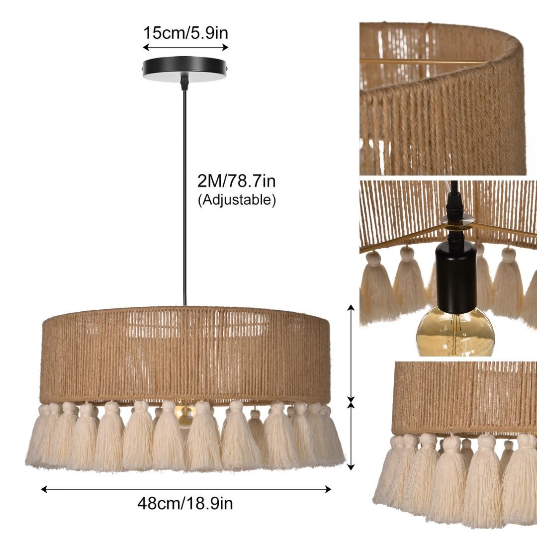 The fusion of bohemian and Nordic styles uses high-quality raw pure cotton thread for the hanging decor, providing a comfortable texture, while the lampshade, made of hemp rope, is hand-woven, highlighting a vintage and natural aesthetic. Available in Round and Bonbon shapes.