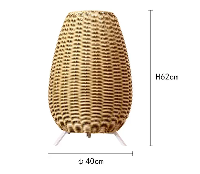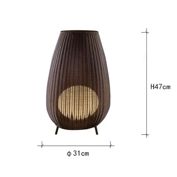 Enhance your outdoor space with our exquisite waterproof floor lamp designed for patios. Perfectly suited for villas and gardens, this lamp adds a touch of elegance and functionality. Made from PP rattan, it seamlessly blends into any outdoor environment. Available in two sizes, Ø31 x H 47 cm and Ø40 x H 62 cm, it provides ample lighting while creating a warm and inviting atmosphere.